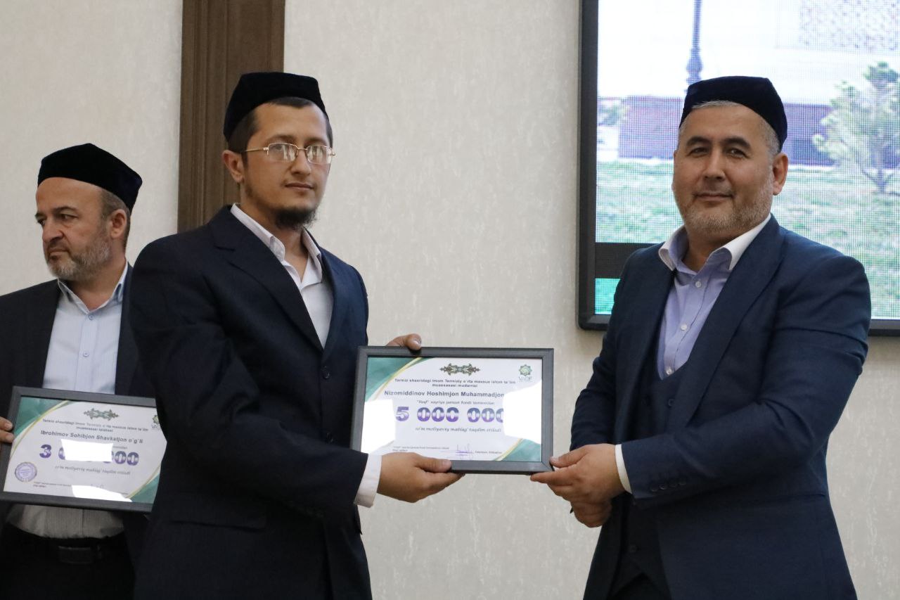 Тадбир давомида фонд томонидан 2 нафар энг фаол ва жонкуяр ўқитувчига 5 миллион сўмдан жами 10 миллион сўм, 2 нафар энг аълочи ва намунали талабага 3 миллион сўмдан жами 6 миллион сўм, 1 нафар ходимага 1,5 миллион сўмдан умумий ҳисобда 17,5 миллион сўм моддий рағбатлар ўз эгаларига тақдим этилганлиги ҳақида сертификатлар топширилди.